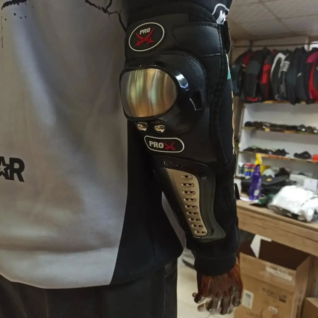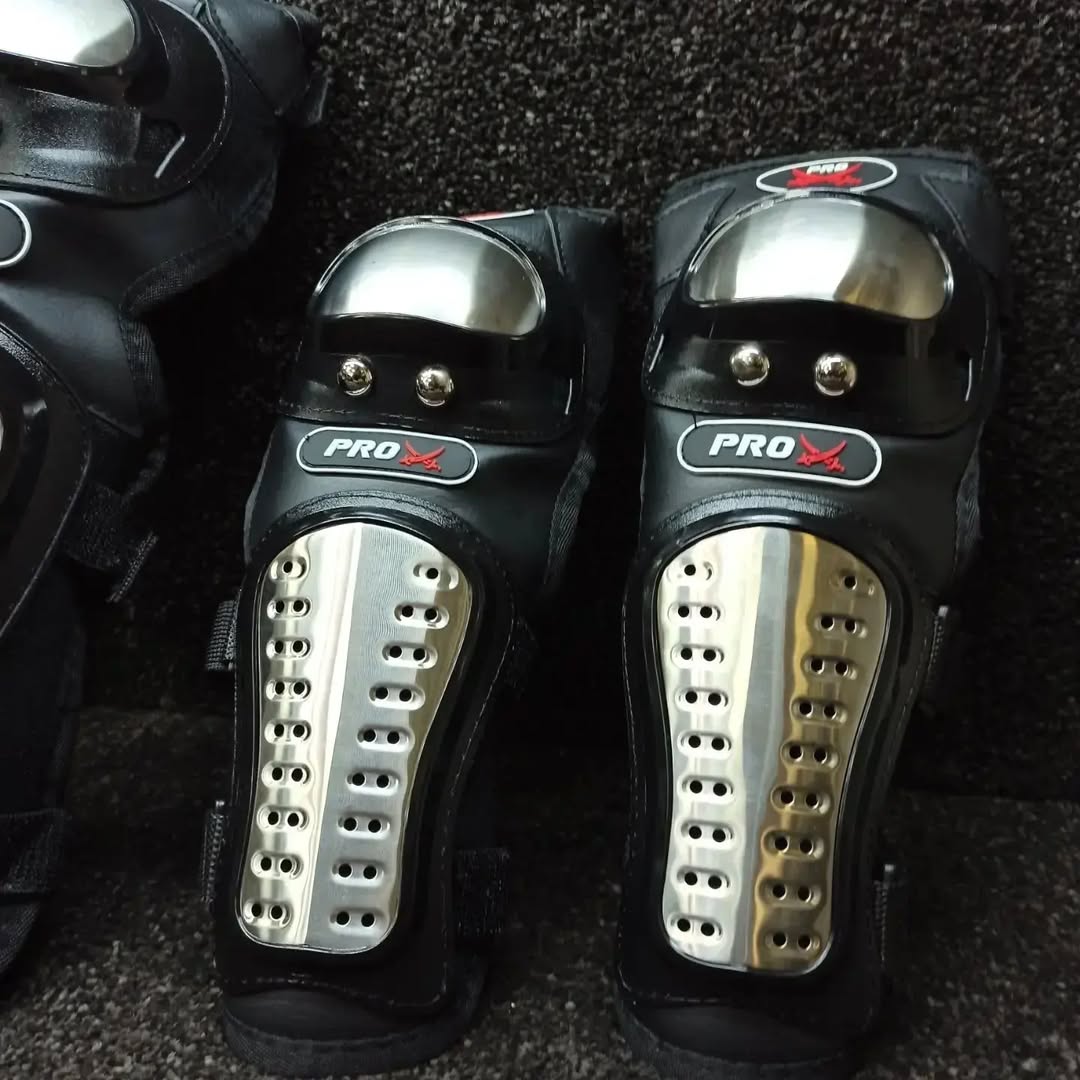 زانوبند برند پروبایکر چهار تیکه ارنجو ساعد دست روکاملپوشش میده ماسه زانو وساق دا روکاملپوشسمیده جنس استیل فشرده وزن سبک دارای بند ریگلاژ و قابل تنظیم
